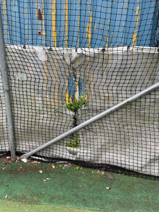 There was insufficient space for bag storage and safe player equipment and changing areas. There was no security fencing which left the facilities open to vandals to damage the nets, surface and batting protection sheeting.